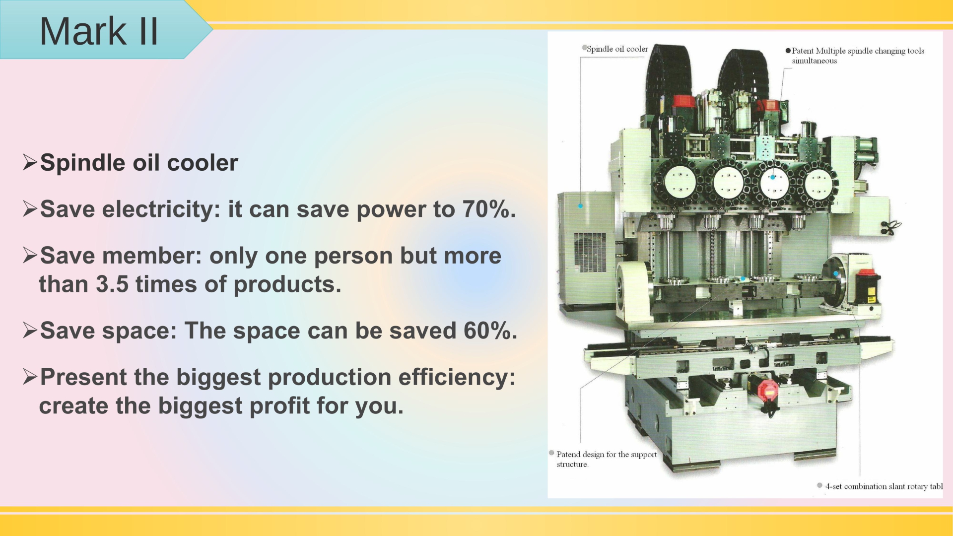 Một trong những sản phẩm tiêu biểu của HANRETEC là MARK II – trung tâm gia công 4 spindle 5 axis machining center.