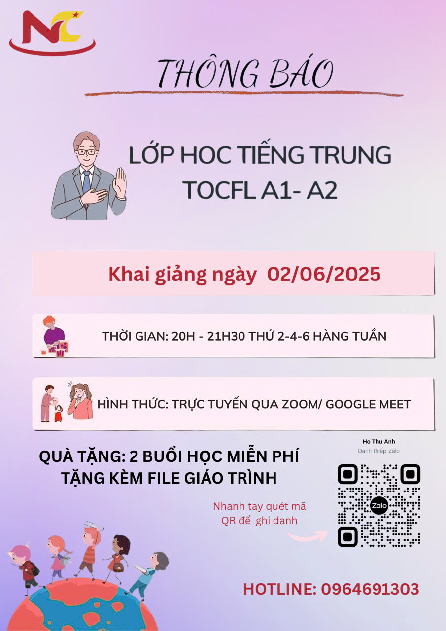 Bạn đang muốn bắt đầu học tiếng Trung một cách bài bản và hiệu quả? Khóa học TOCFL A1-A2 chính là lựa chọn hoàn hảo dành cho bạn!